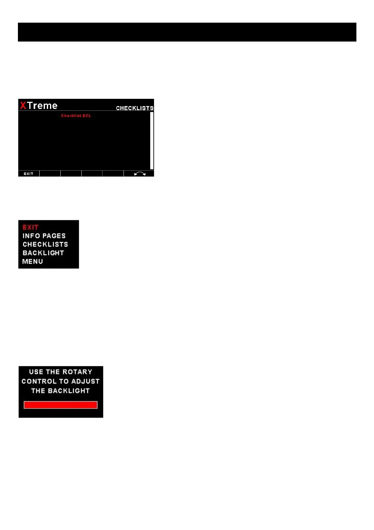 pressing the rotary control and selecting “CHECKLISTS”. A window