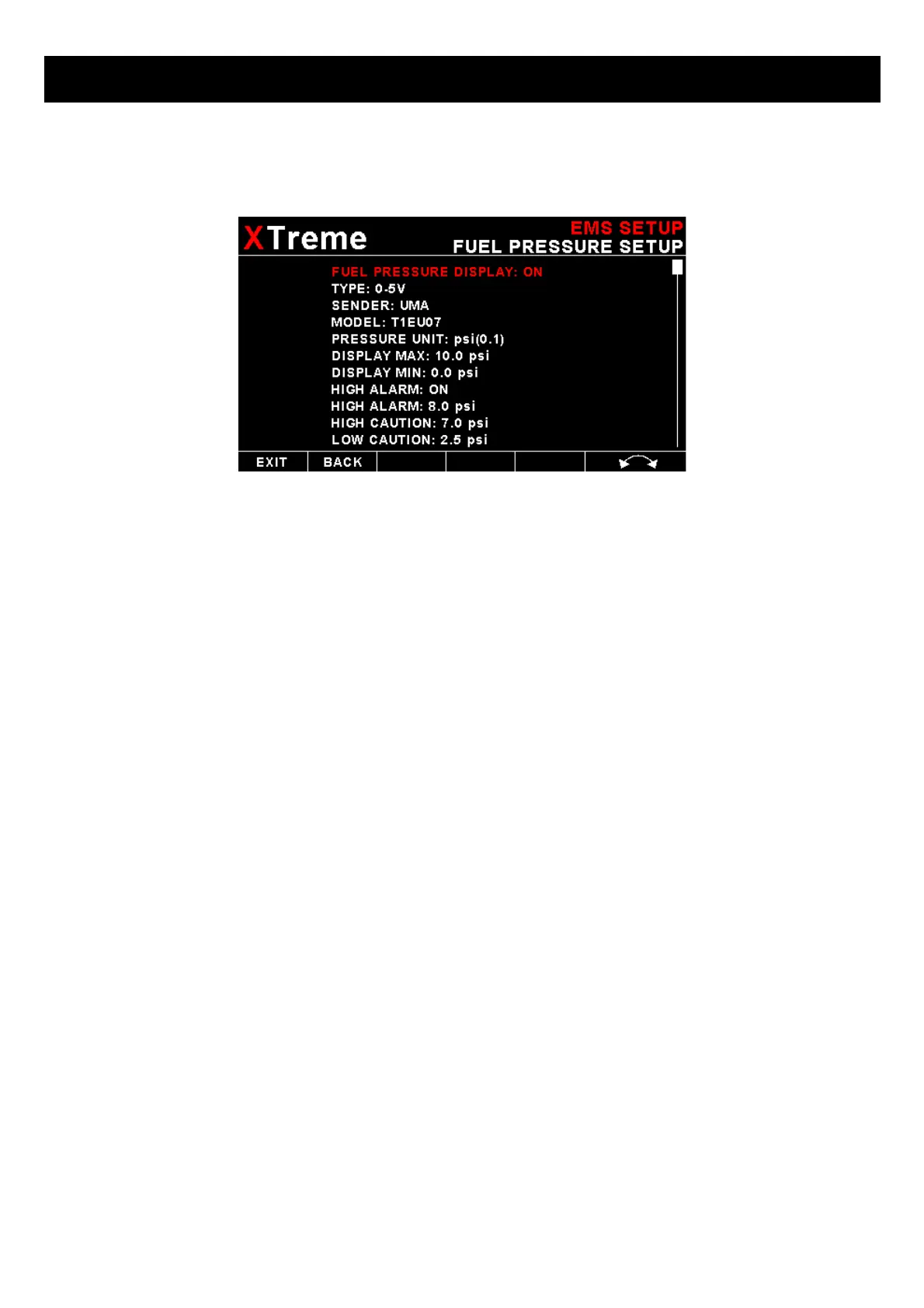 This enables or disables the fuel pressure display on the EMS display screen