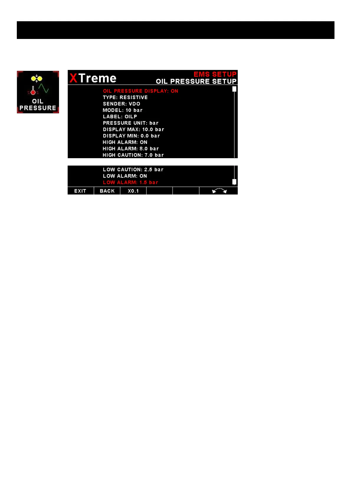Select which VDO pressure sender you are using. A selection between a VDO 2, 5 or 10 Bar can be selected.