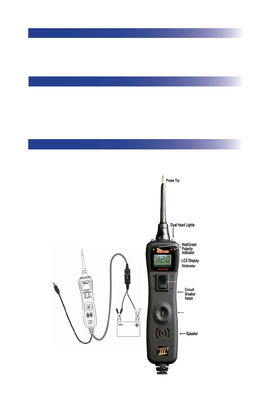 low beep and go into “Power Probe Mode (PPM) (See Mode #1 on page 10) and the 2 bright white LEDs