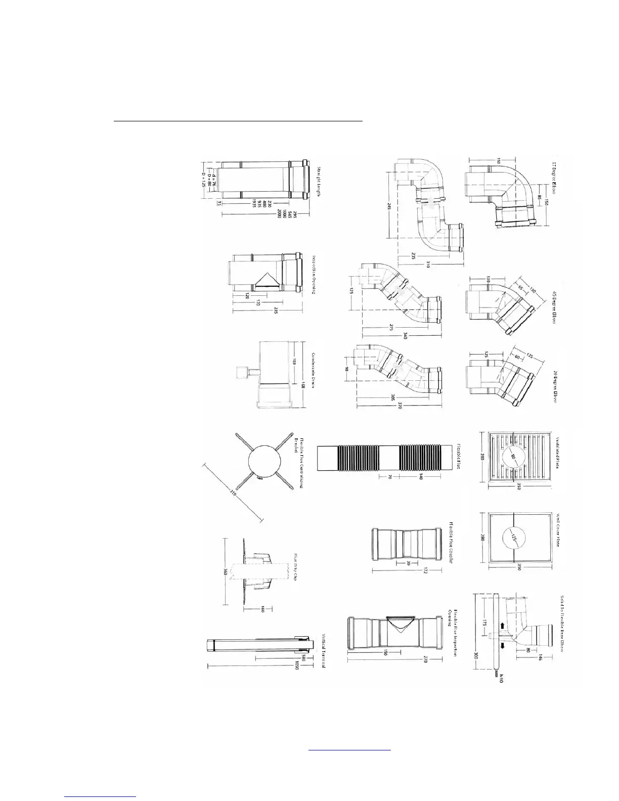 10.6 Dimensions of Available Flue Components (DN80/125mm)