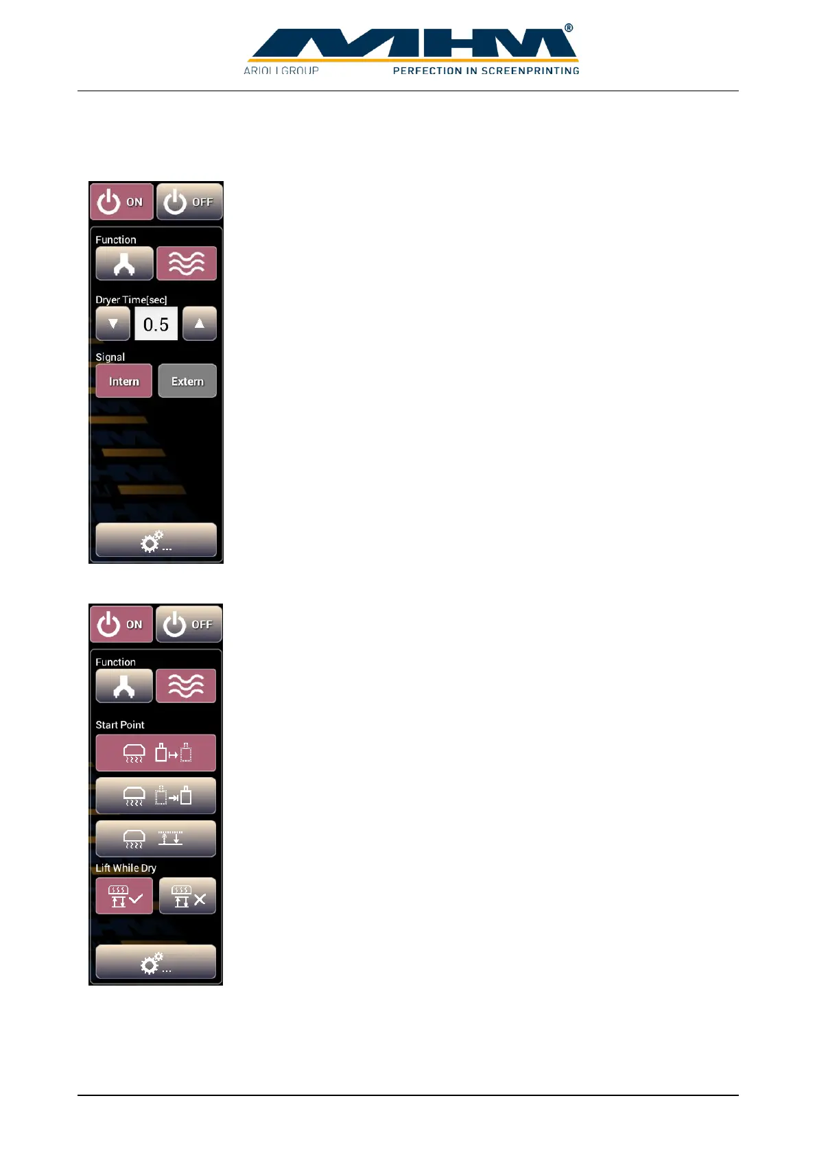 “Intern”: Drying time is controlled by the machine. Enter time in the field
