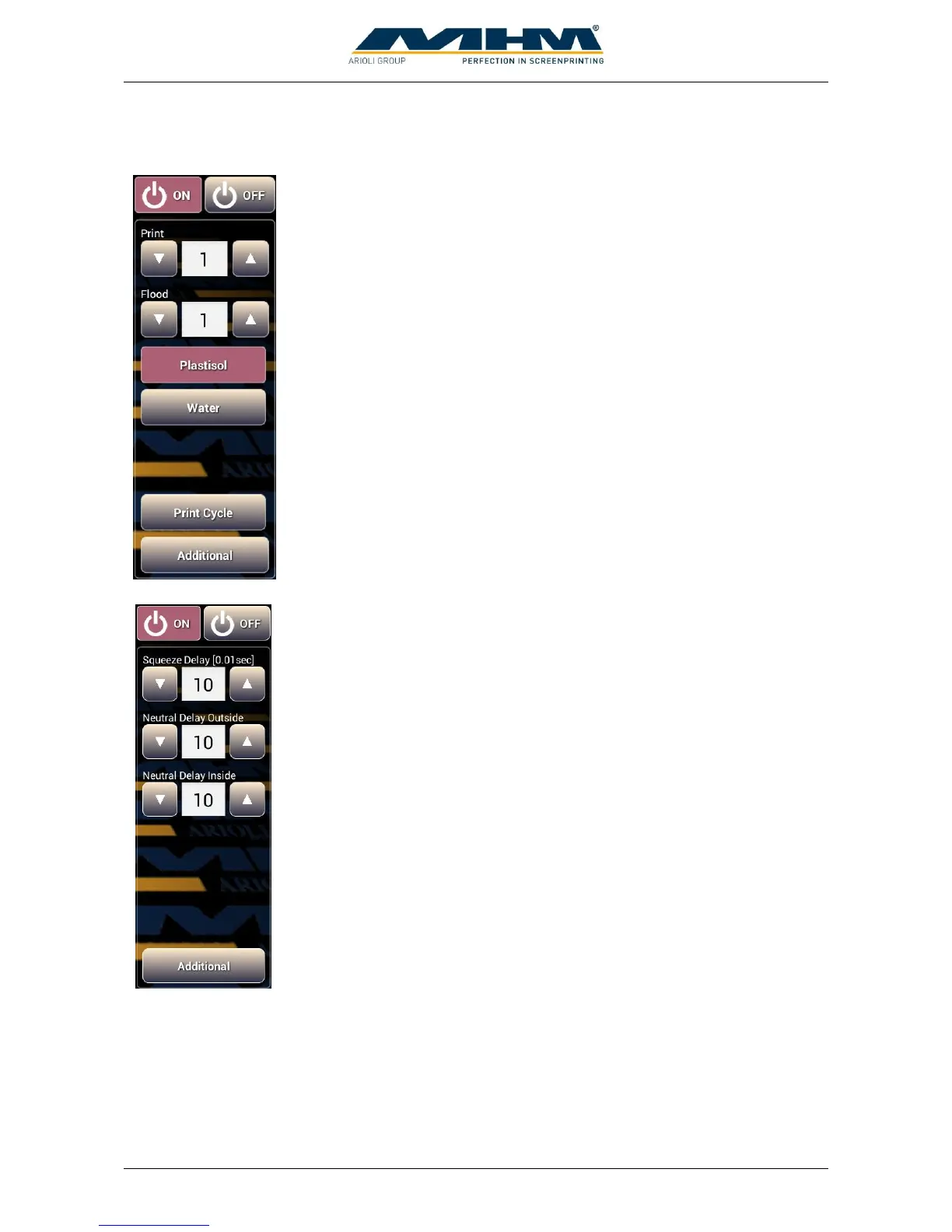 Select this when plastisol ink is used. Print cycle starts with a flood stroke