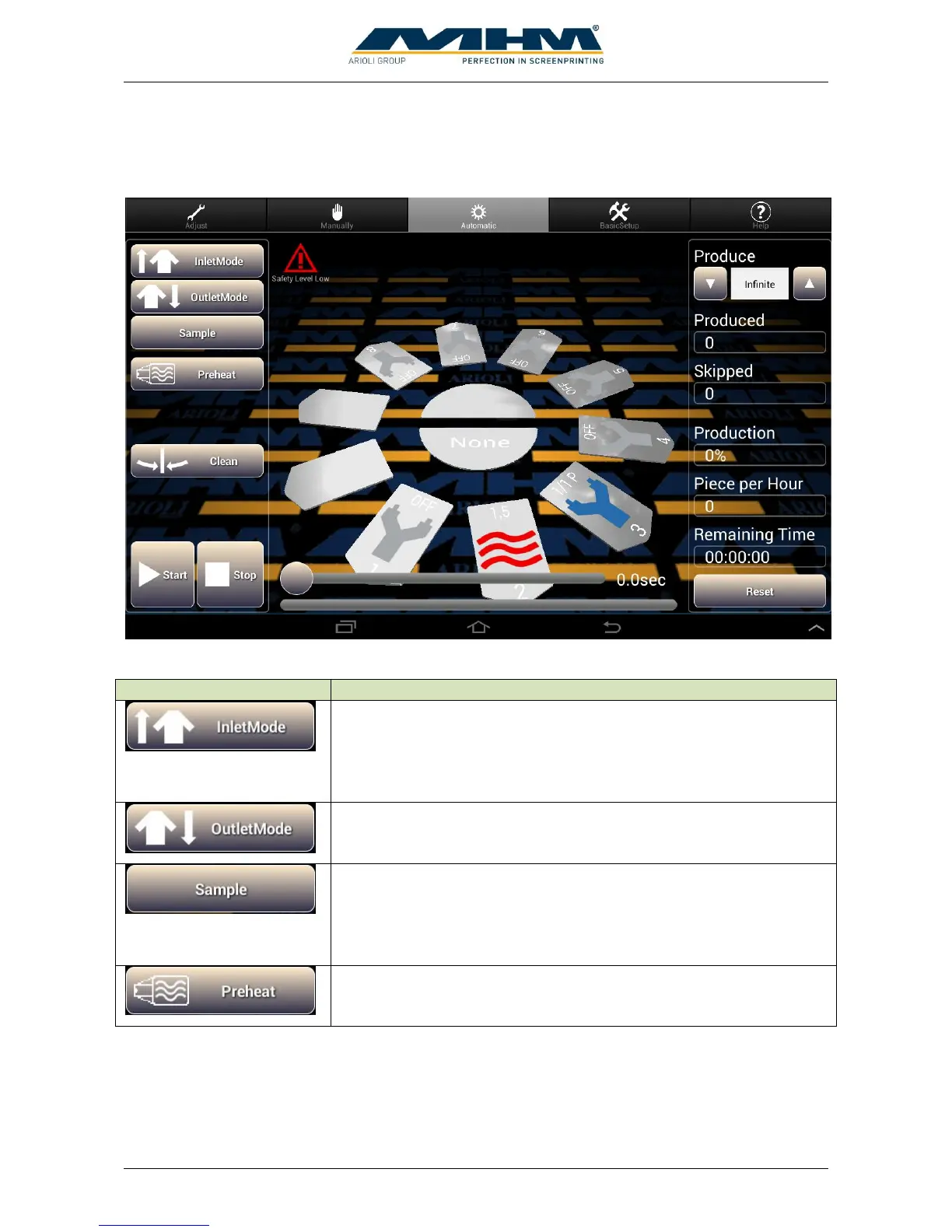 is displayed at “Produce”. The sample will automatically perform the