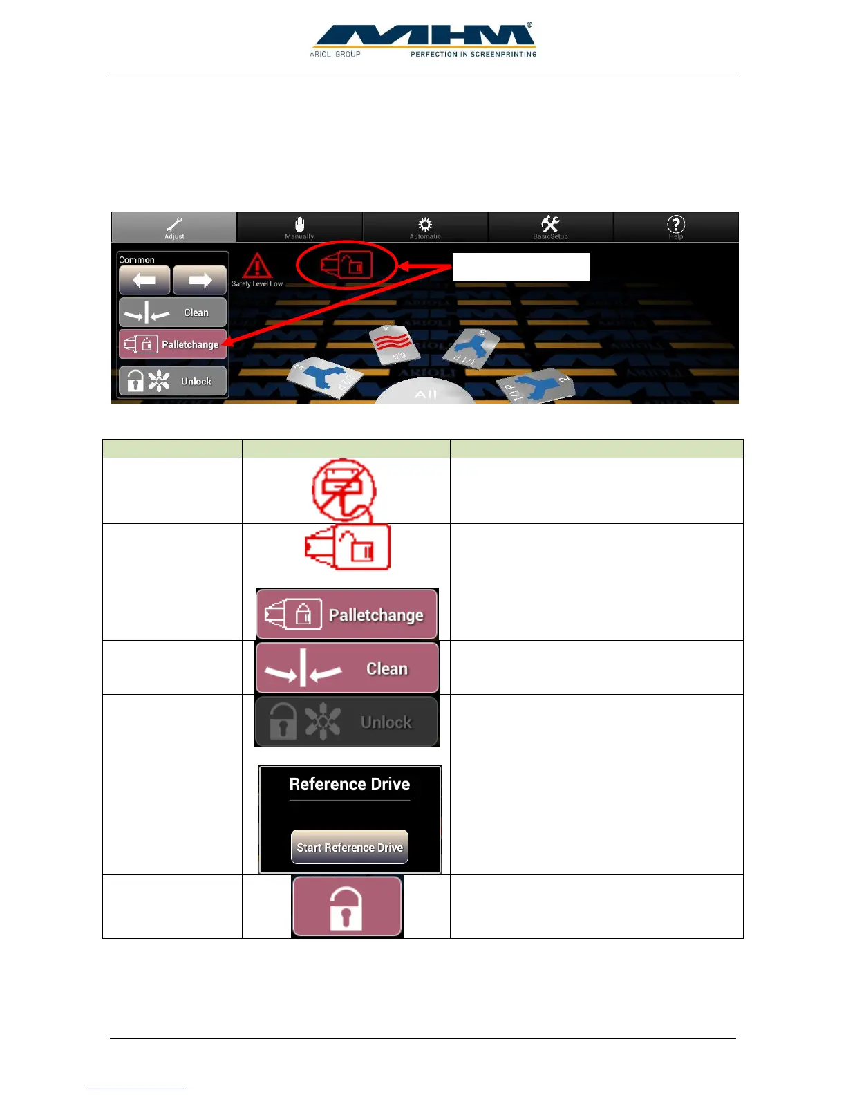 In several working positions operation will be blocked automatically. The reason for blocking will