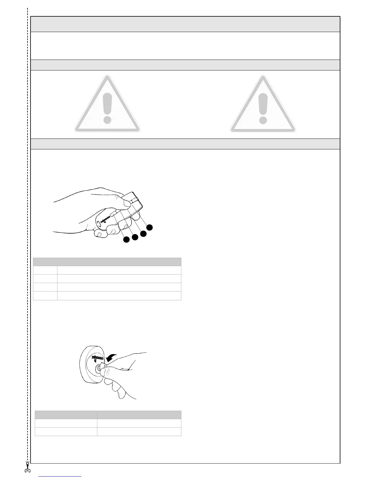 (*) This table must be prepared by the person who has programmed the
