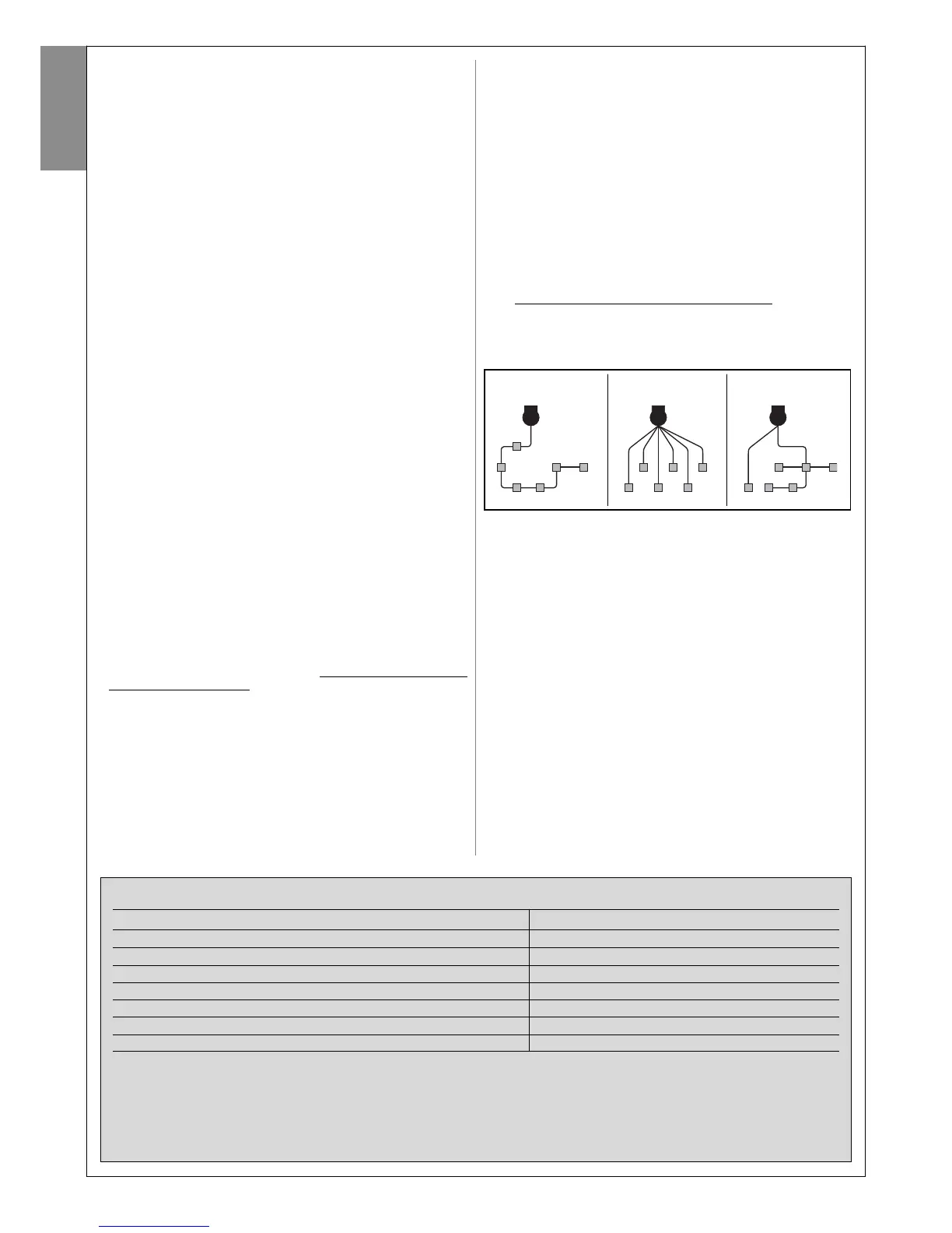Connection Type of cable (minimum section values) Max. admissible length