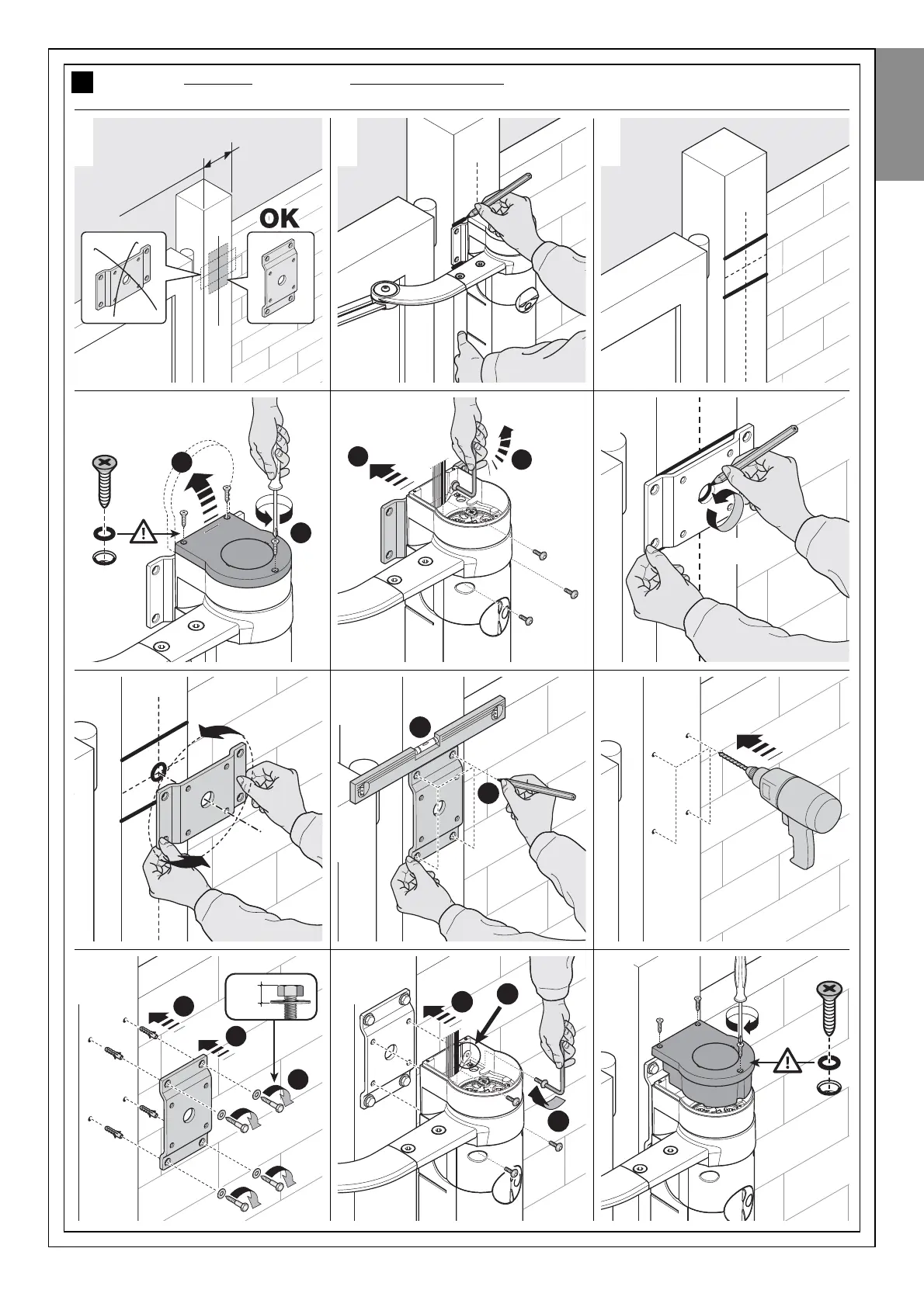 CAUTION! - If the length of the gate post is between 80 and 135 mm, the rear gearmotor fixing bracket should be turned through