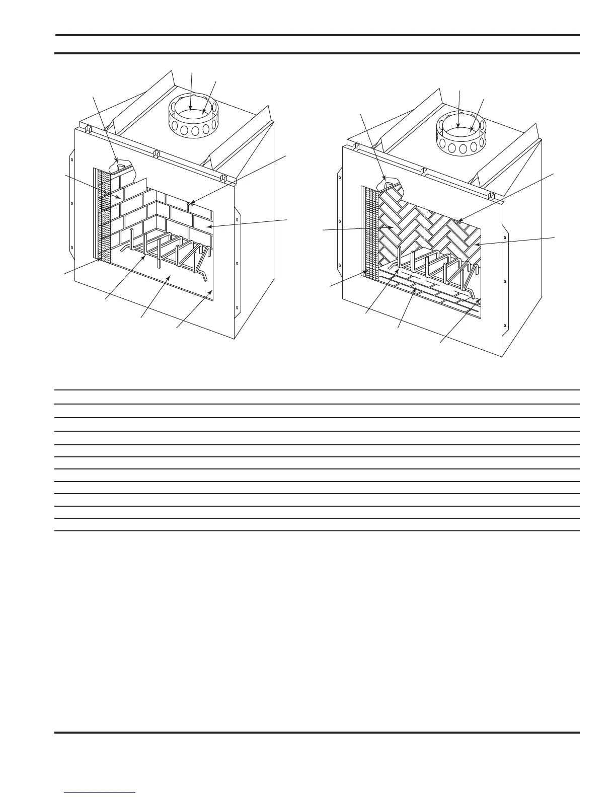 * When ordering replacement firebrick, check the serial number and plant code of the fireplace,