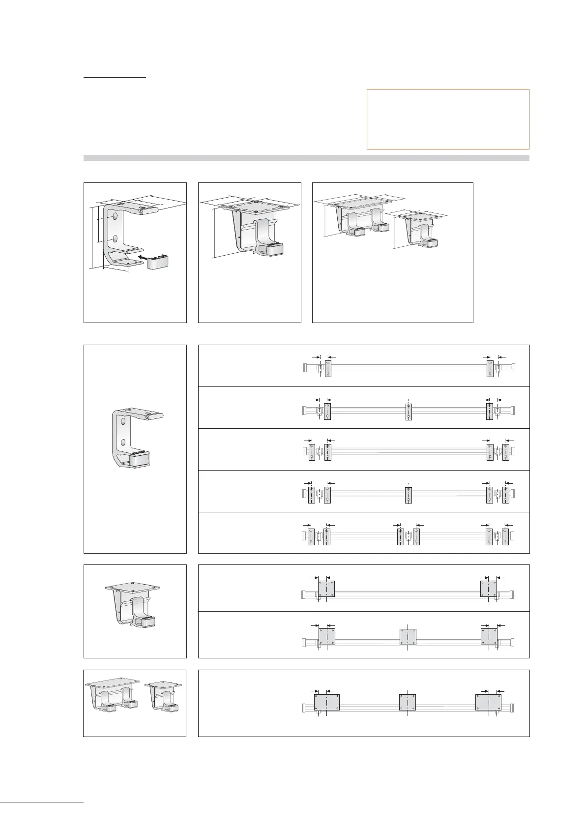 It is possible to install the brackets left or right of the arm brackets. Pairs of brackets have to be installed on the left and right side of the arm bracket. Consider the