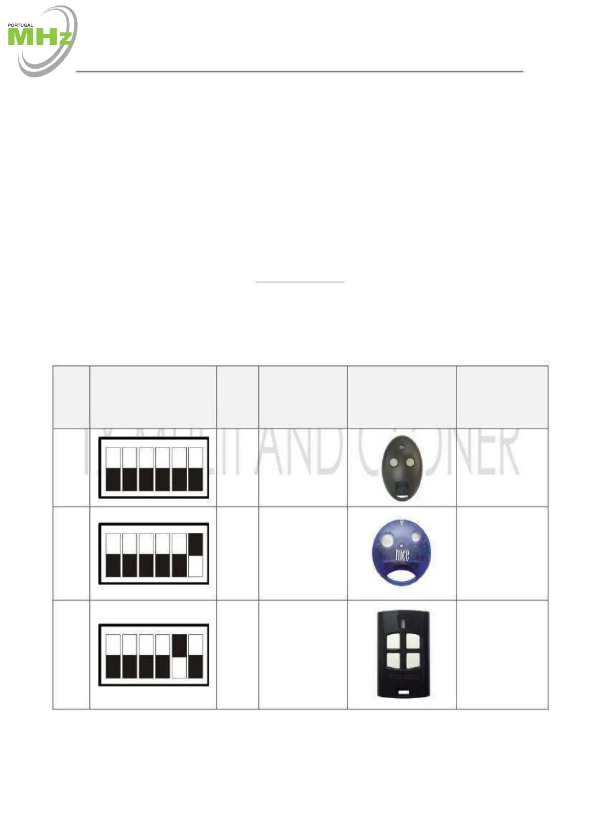 Selection DIP switches to enter directly in the receiver (table 1 to 34)