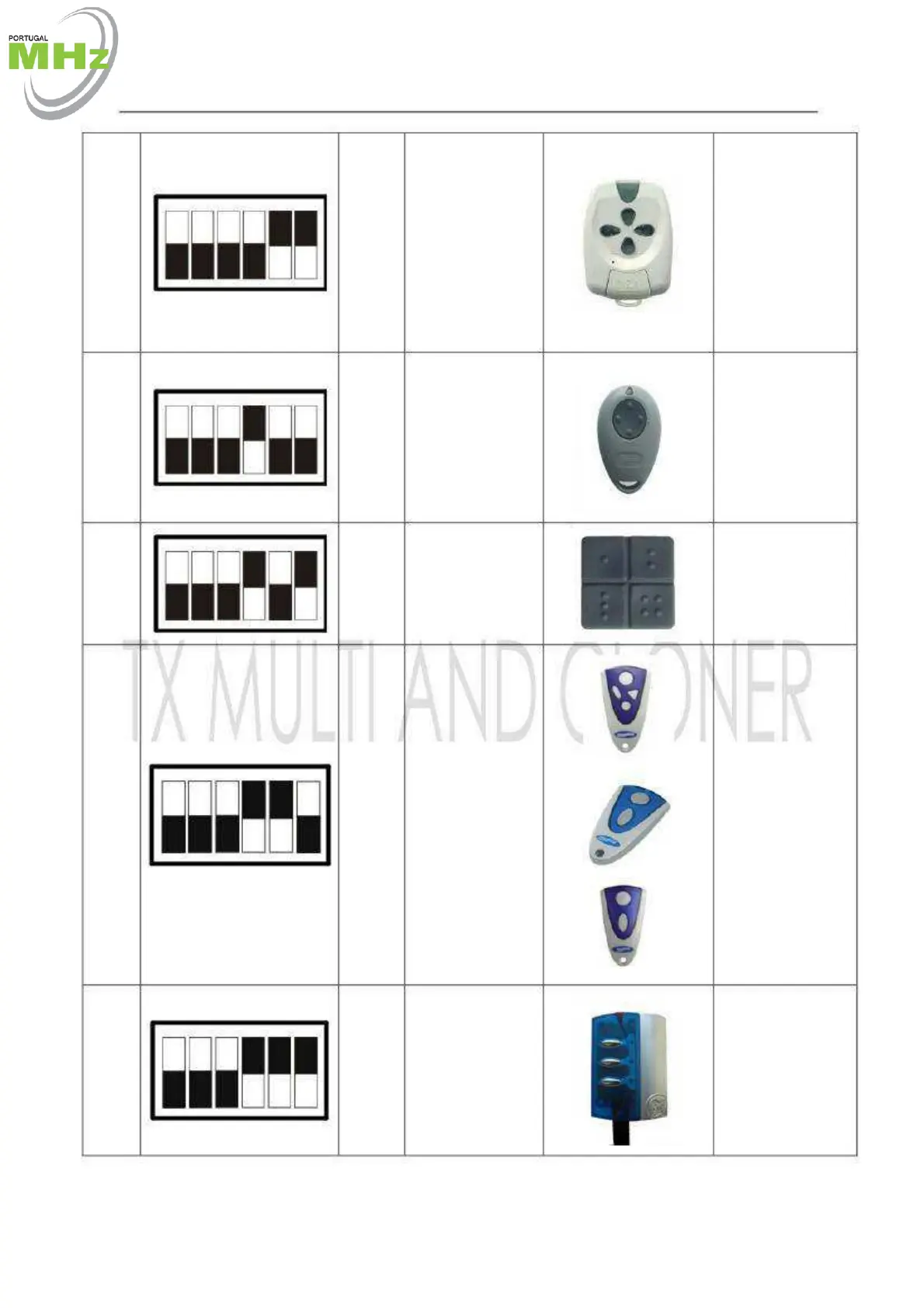 MHZ TX NewCloner - DIP Switch Settings for DEA, ERREKA, GIBIDI