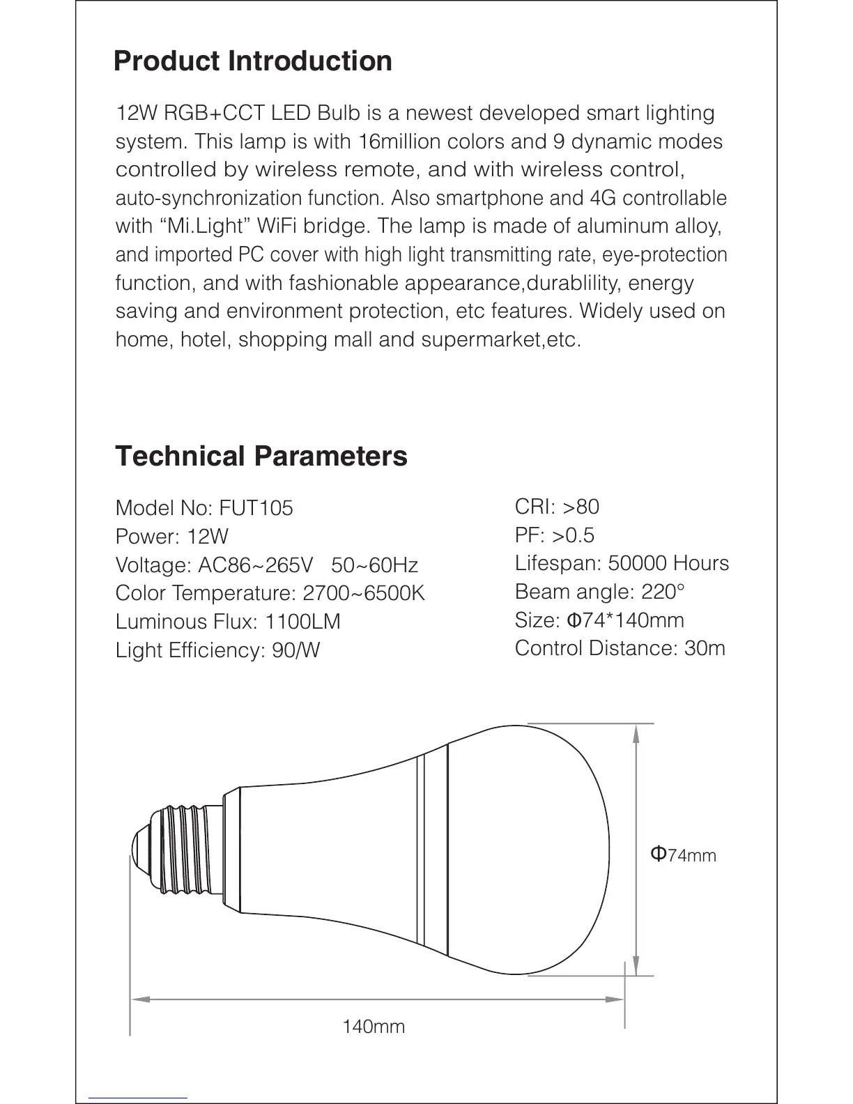 with “Mi.Light” WiFi bridge. The lamp is made of aluminum alloy,