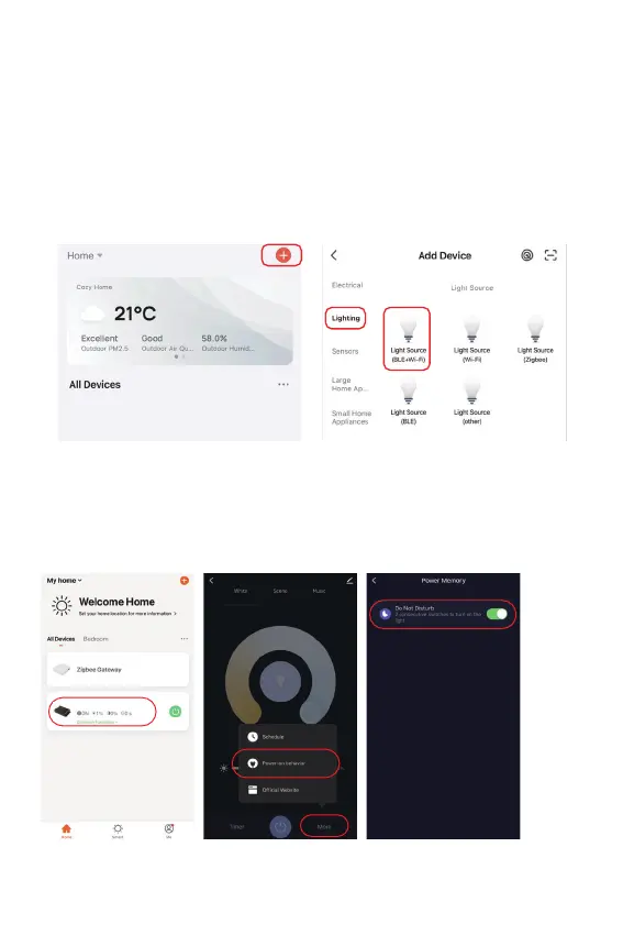 Click the light which need to be set up or group control --- click “More” --- click “Power-on behavior” ---