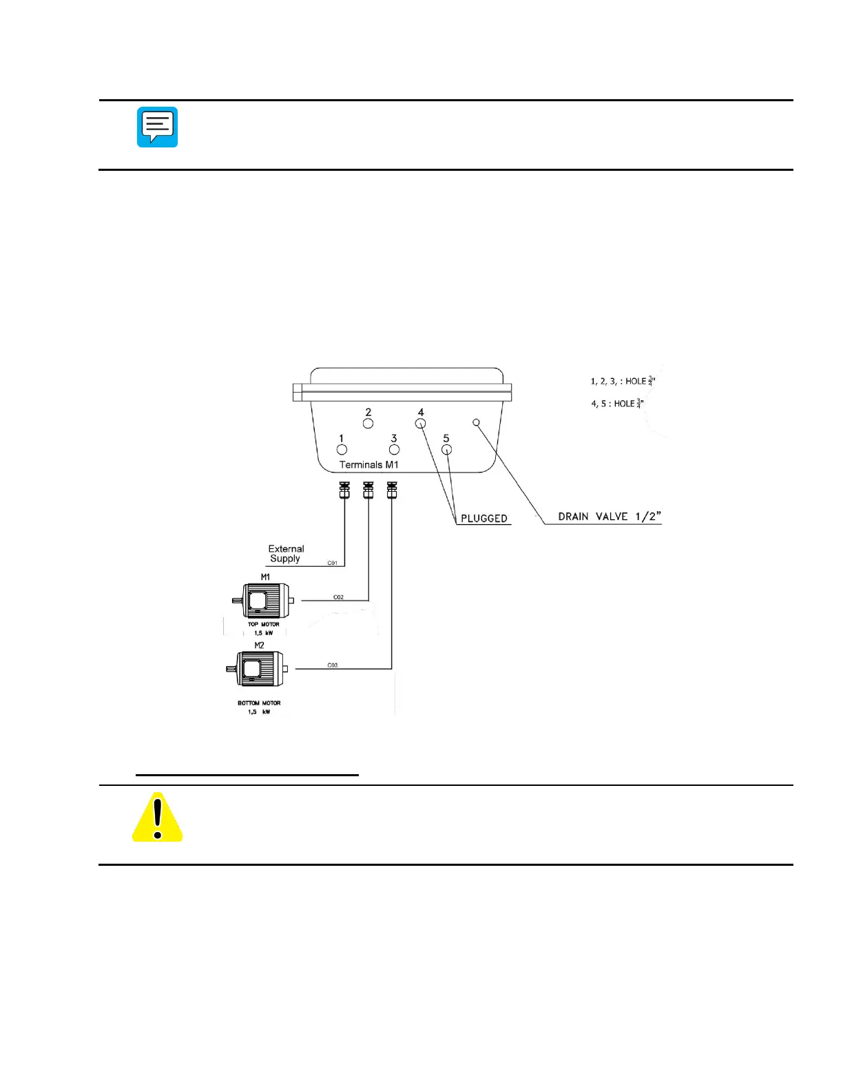 4. Confirm power supply and motor connections are properly secured. External power supply and motor wire inlet