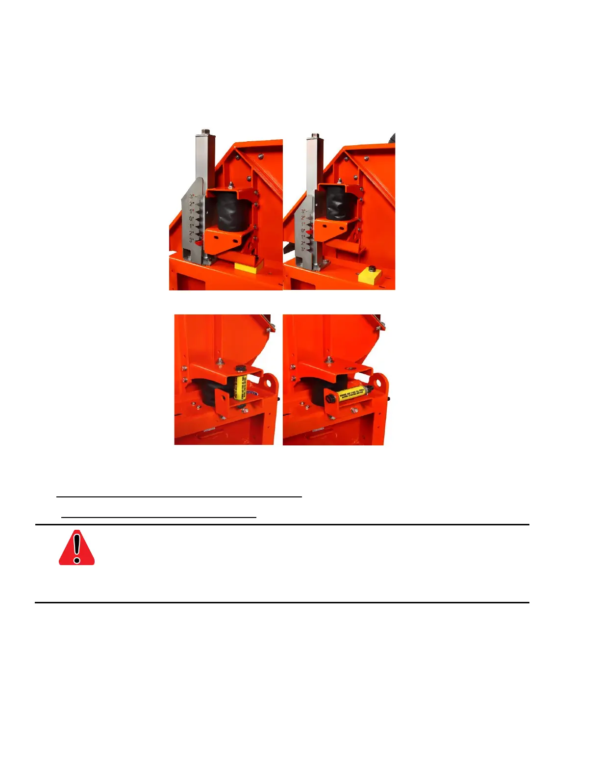 Figure 18. Discharge End Shipping Bracket Engaged (Left) and Stored (Right)