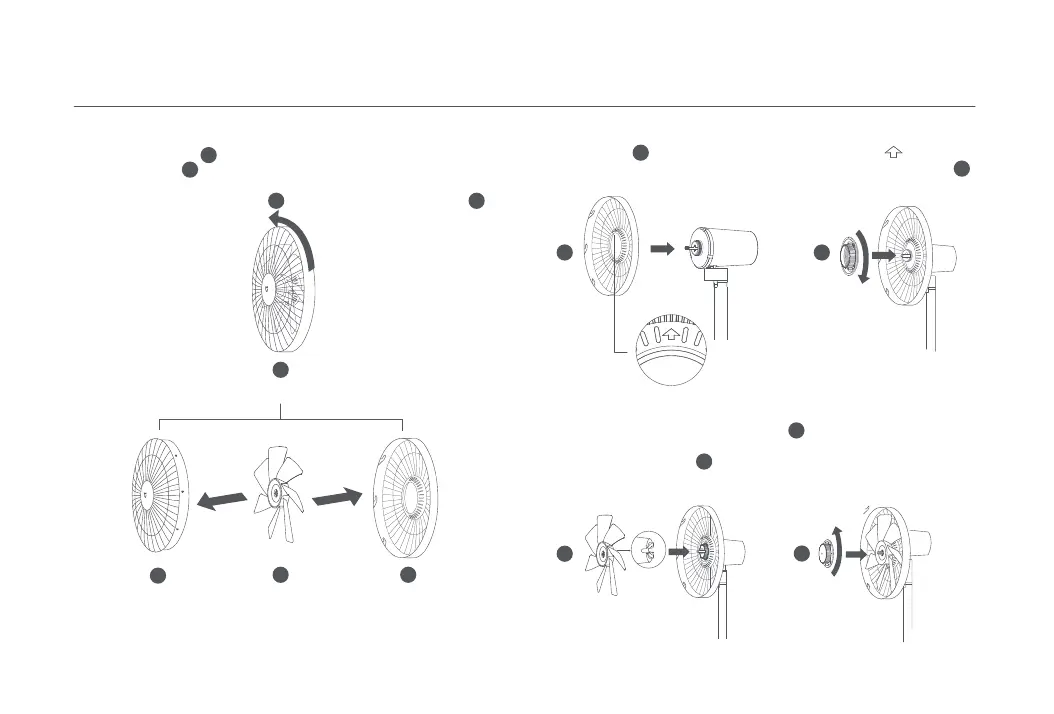 Выполните разборку вентилятора, как показано на рисунках ниже: