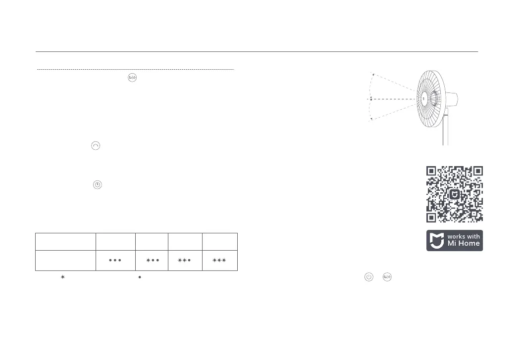 Appuyer le bouton pour active ou désactiver l'oscillation à 90°. Le