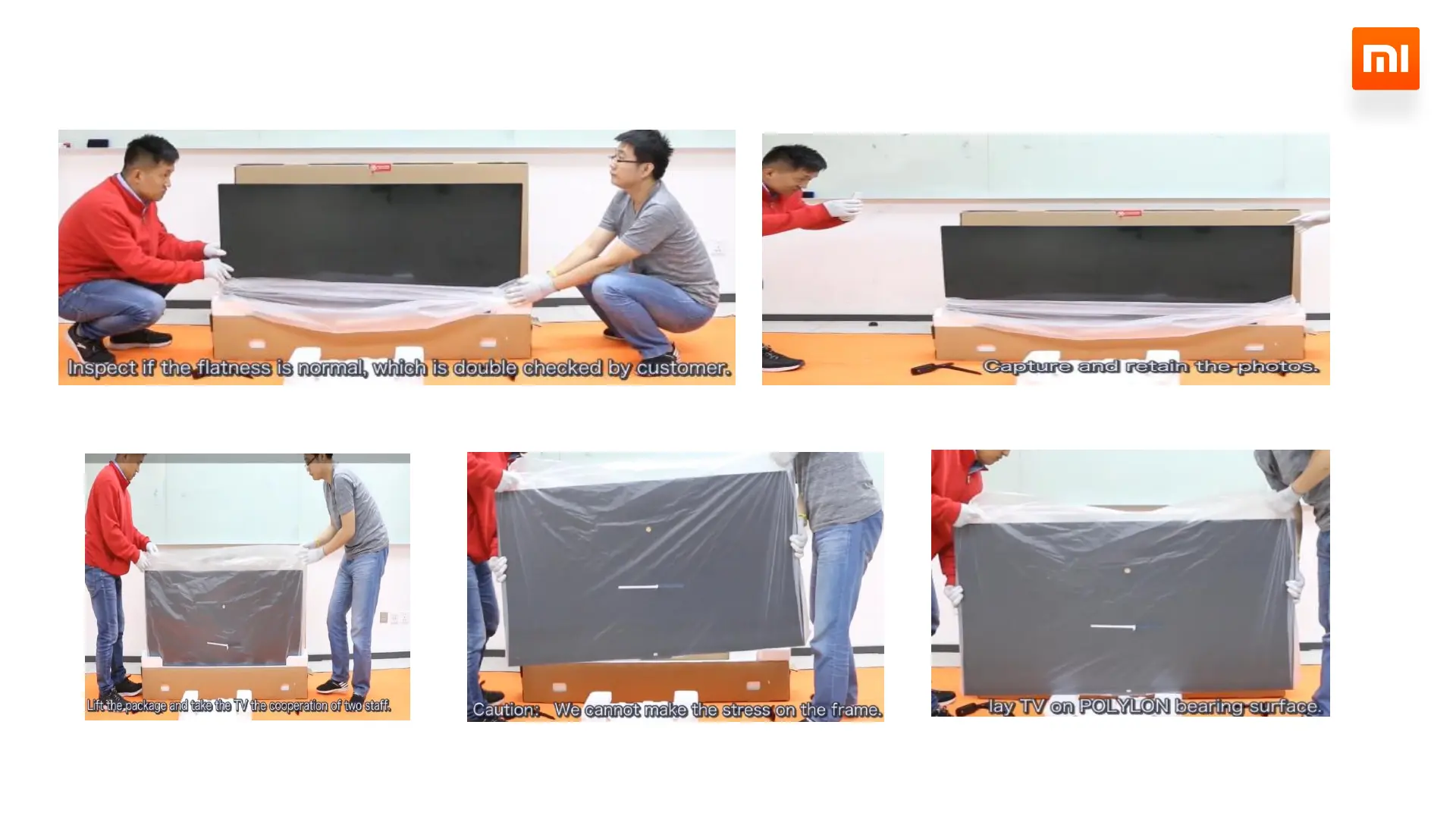 Note : 55” Panel is very thin, Lift & hold package and take out the TV from package and should not