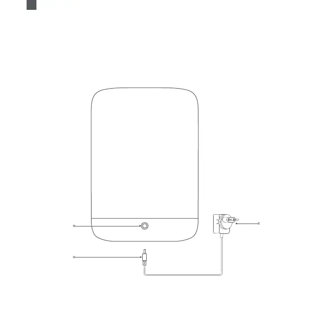 Подключите кабель питания к разъему для зарядки в основании, а адаптер — к источнику питания.