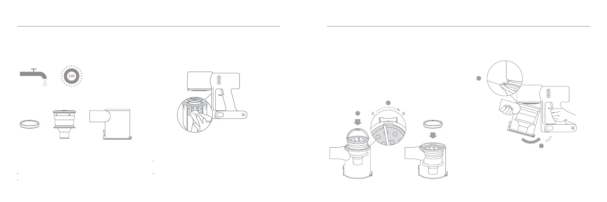 품 손잡이와 먼지통 홈 왼쪽이 맞춰지지 않도록 주의 ) 시계 방향으