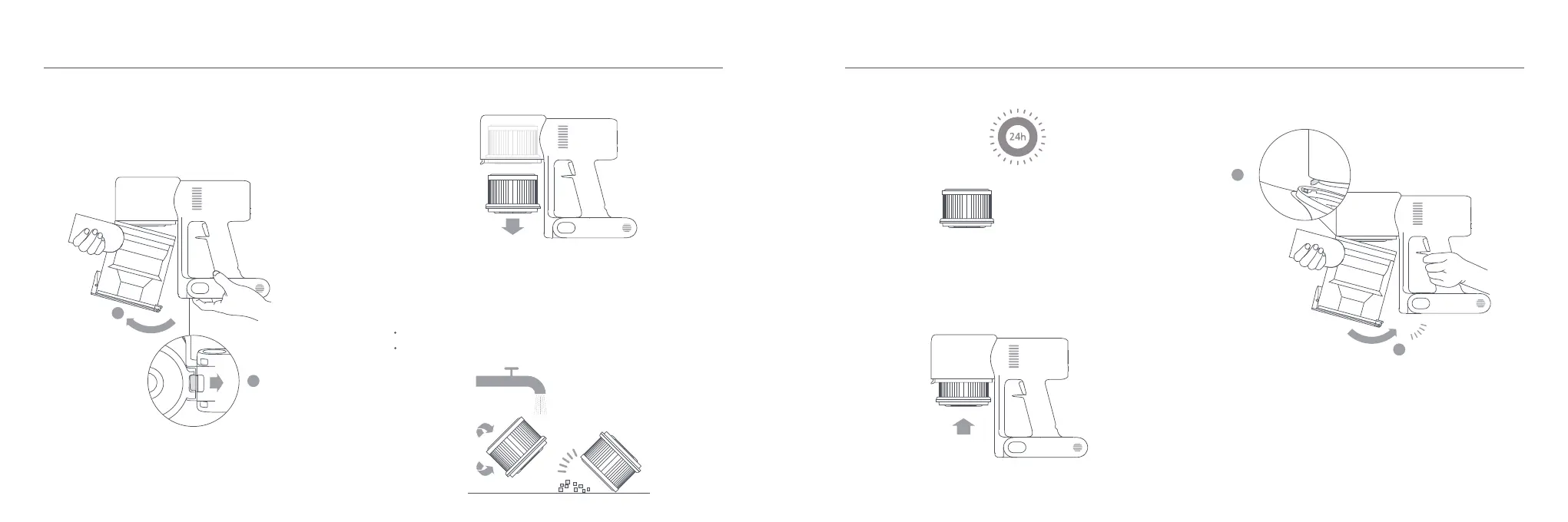 3. 흐르는 깨끗한 물에 HEPA 필터를 360° 돌리면서 세척해