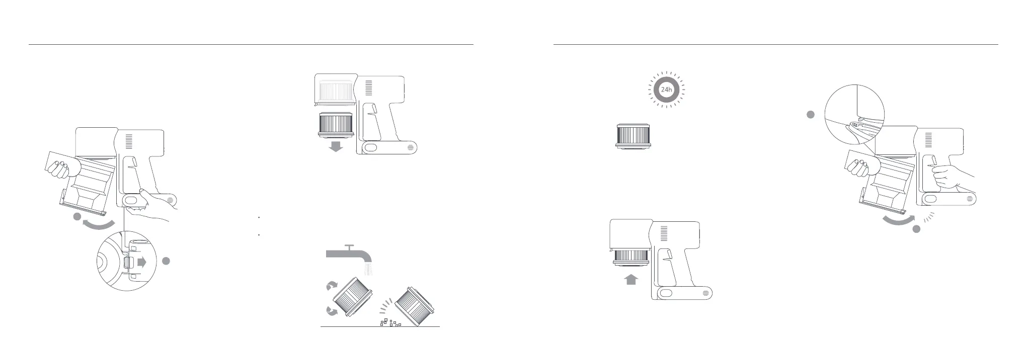 Sie darauf, dass Sie den HEPA-Filter um 360° drehen, um den