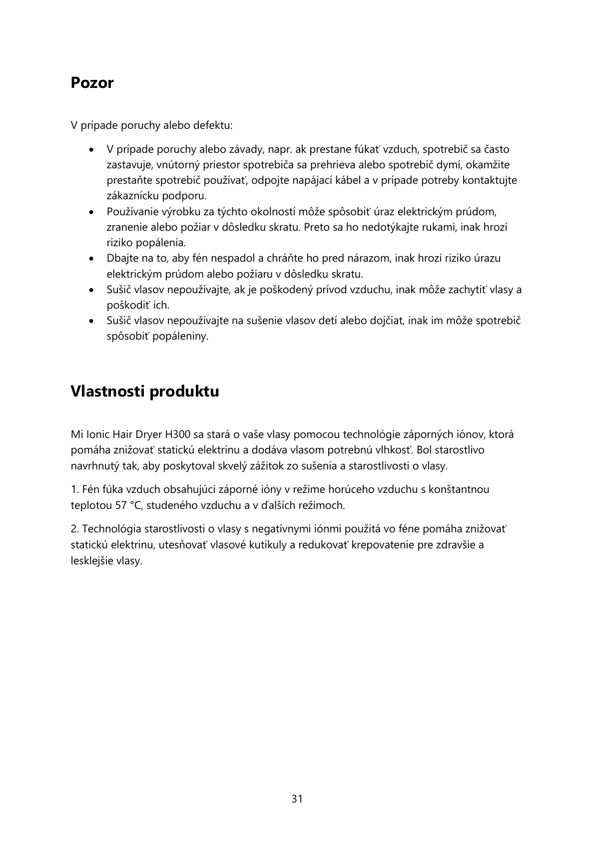 Sušič vlasov nepoužívajte na sušenie vlasov detí alebo dojčiat, inak im môže spotrebič