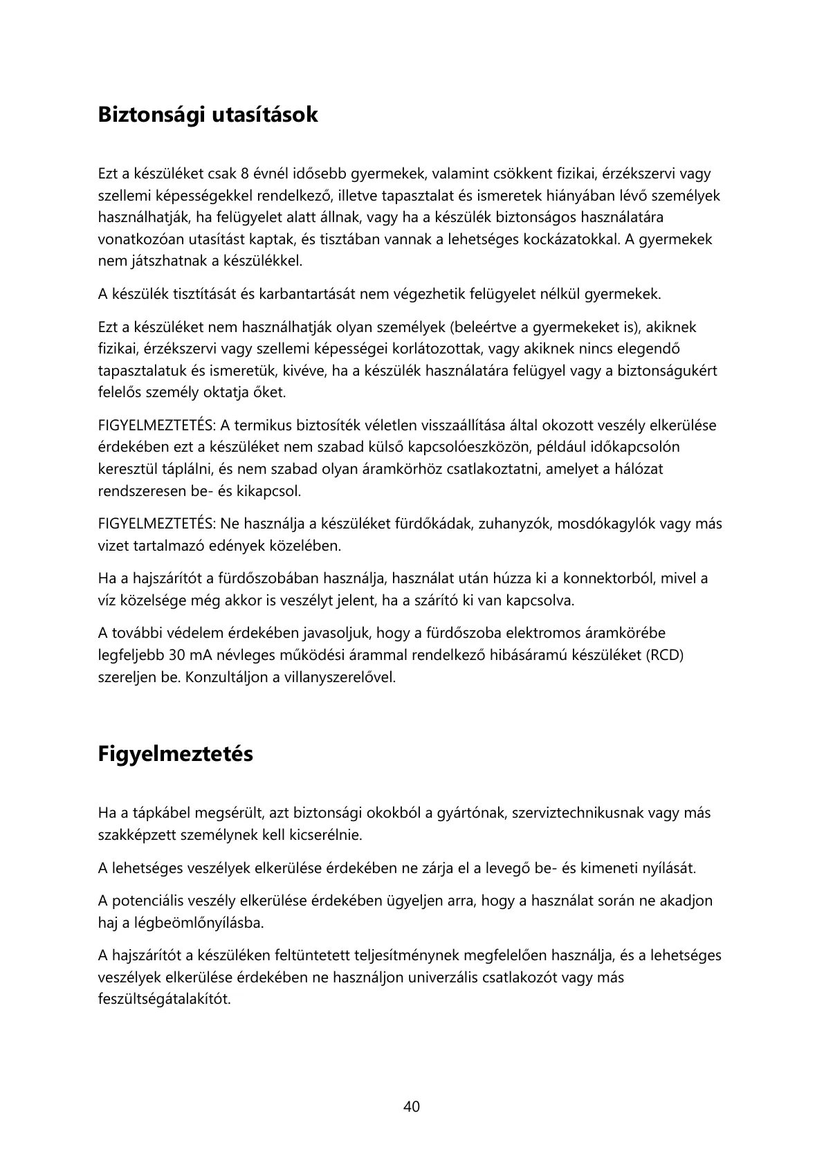 A készülék tisztítását és karbantartását nem végezhetik felügyelet nélkül gyermekek.