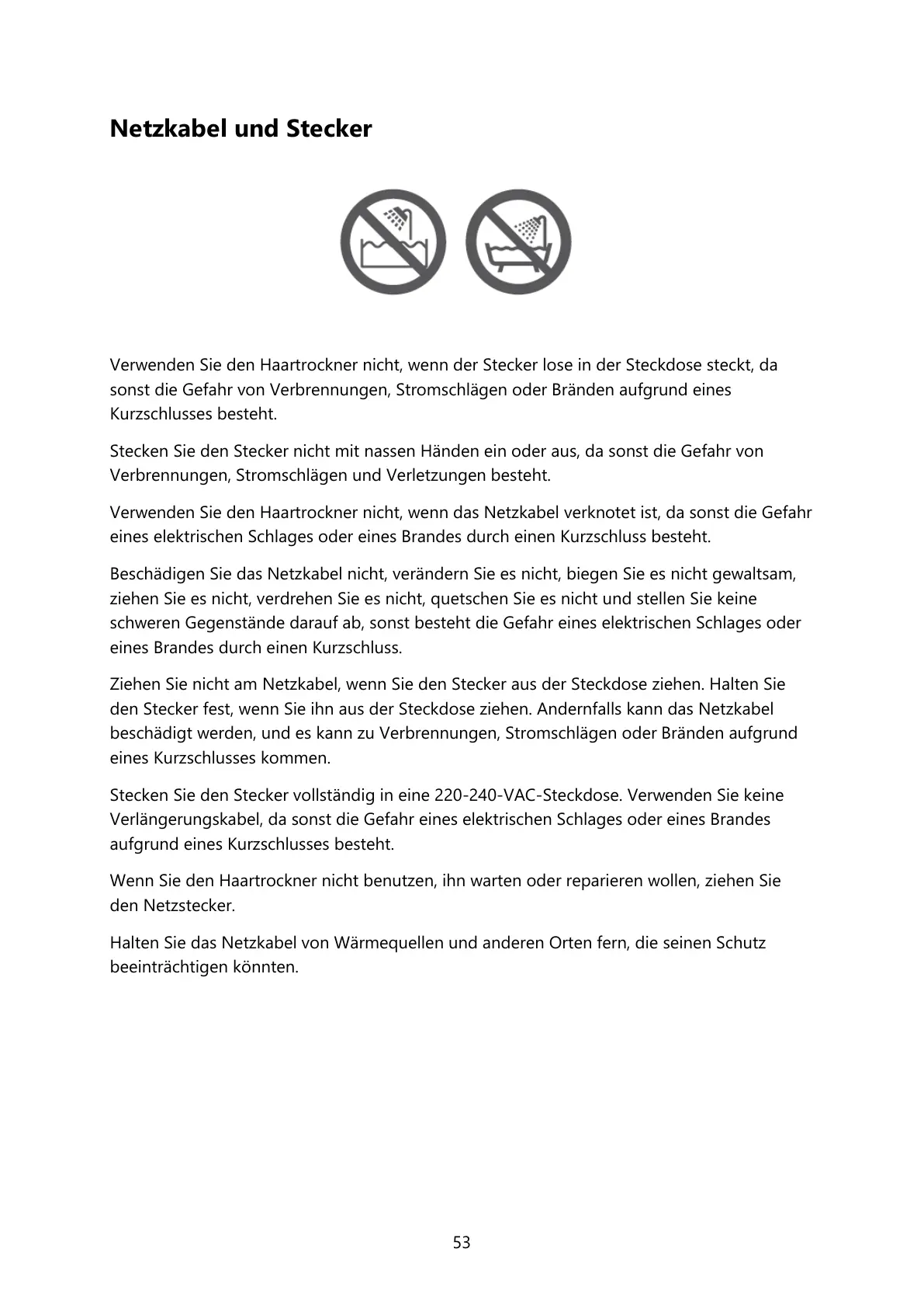 den Stecker fest, wenn Sie ihn aus der Steckdose ziehen. Andernfalls kann das Netzkabel