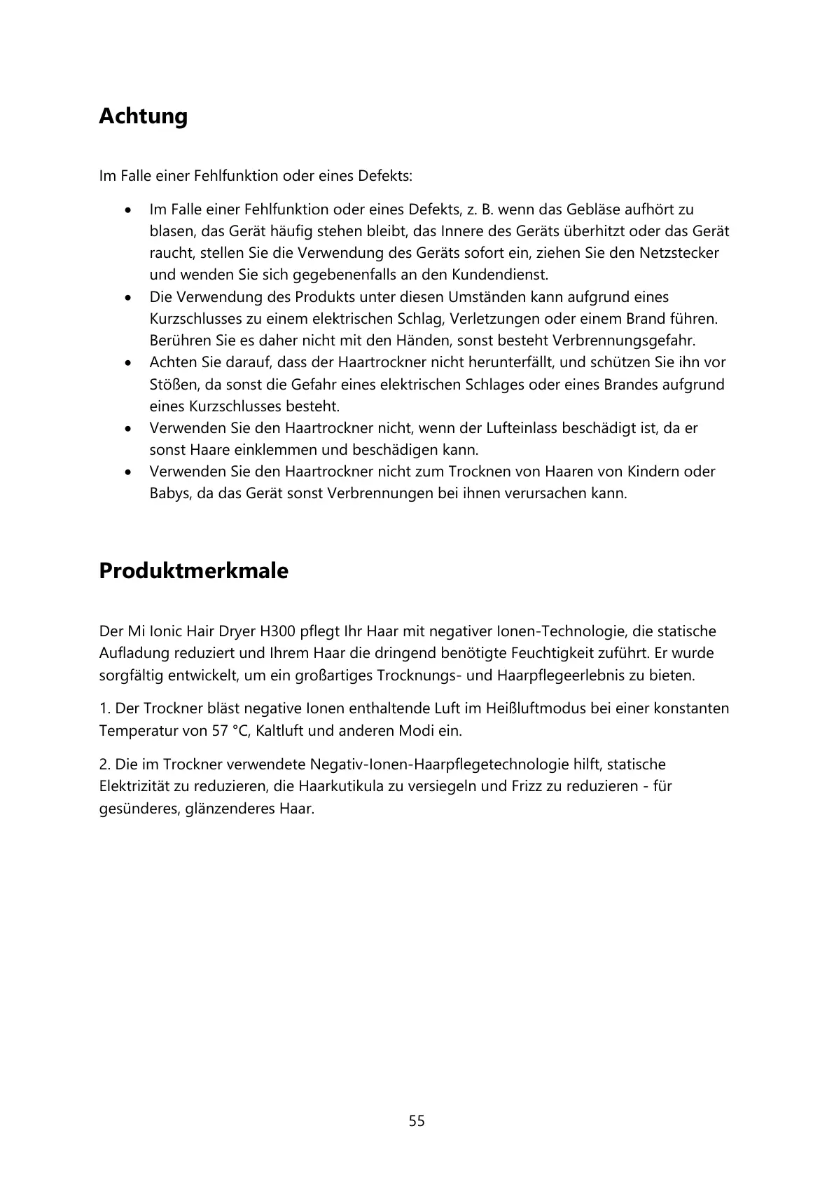 Verwenden Sie den Haartrockner nicht zum Trocknen von Haaren von Kindern oder