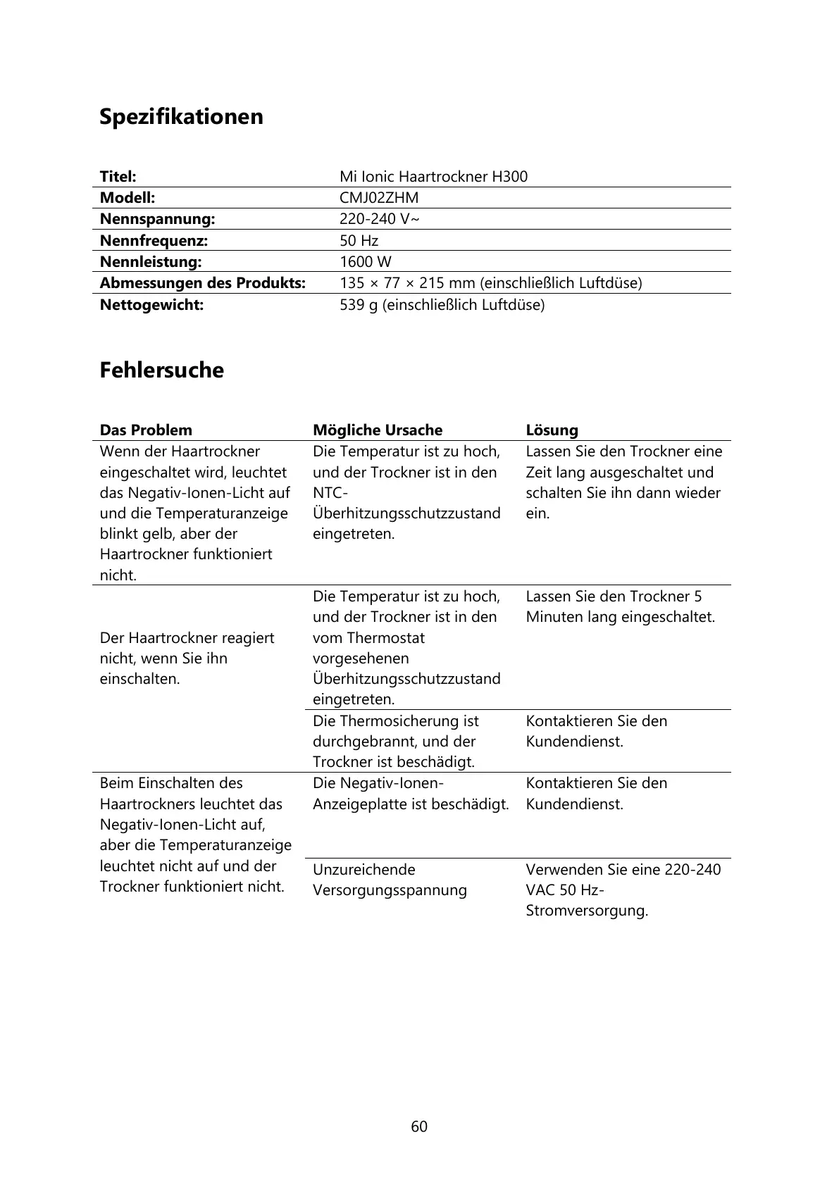 Mi Ionic Haartrockner H300