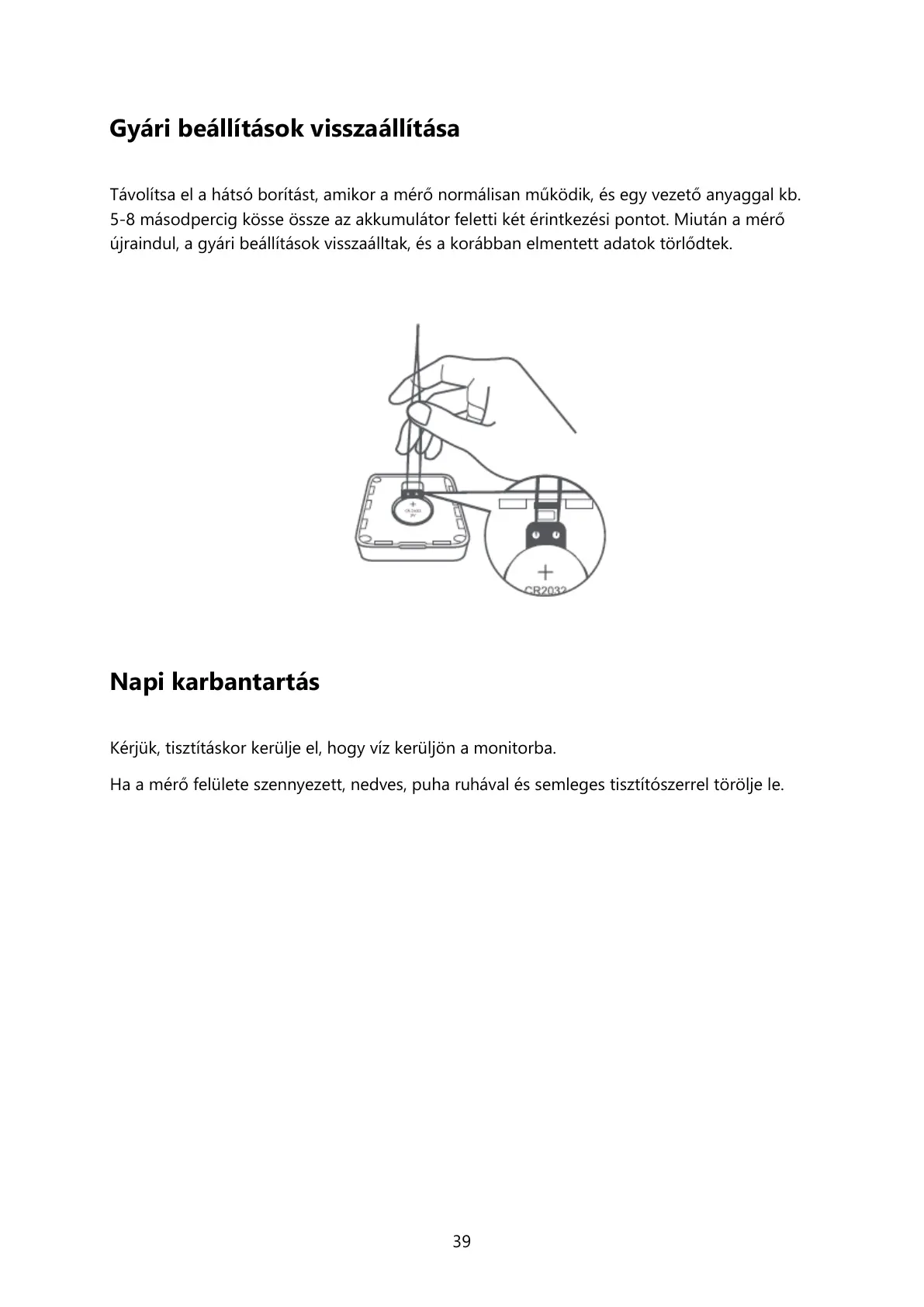 5-8 másodpercig kösse össze az akkumulátor feletti két érintkezési pontot. Miután a mérő