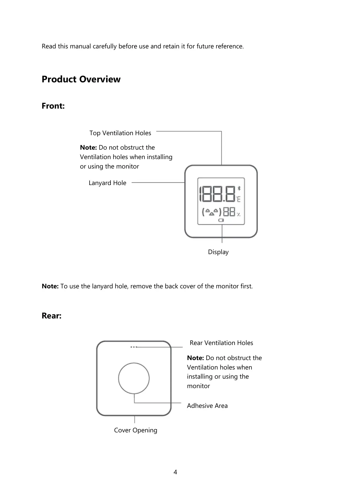 Mi LYWSD03MMC - Product Overview; Front View; Rear View
