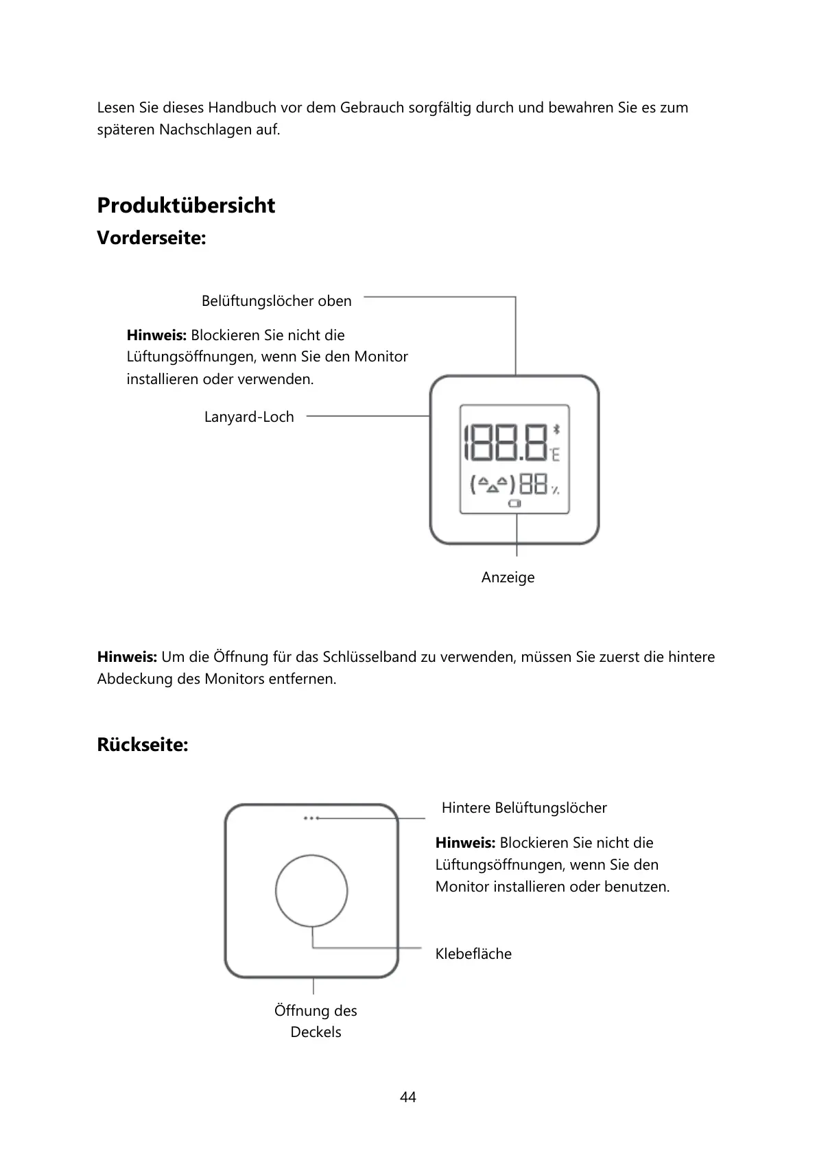 Hinweis: Um die Öffnung für das Schlüsselband zu verwenden, müssen Sie zuerst die hintere