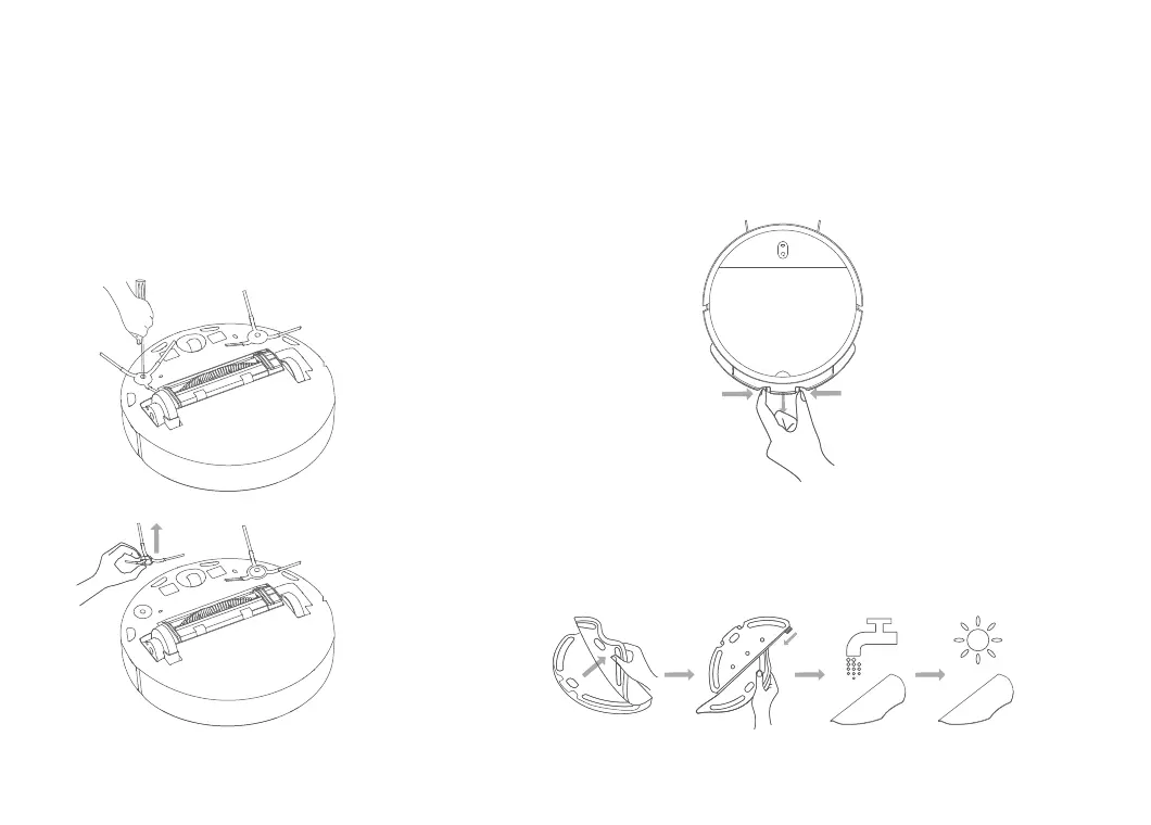 1. Pinch the side clips of the mop pad holder and pull to remove it,