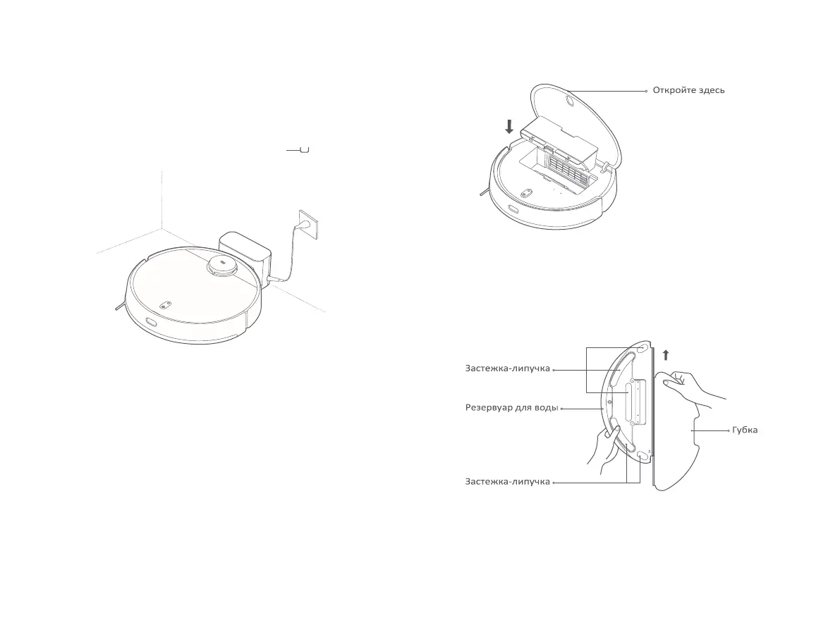 Режим сухой уборки (установка контейнера для пыли): Откройте крышку