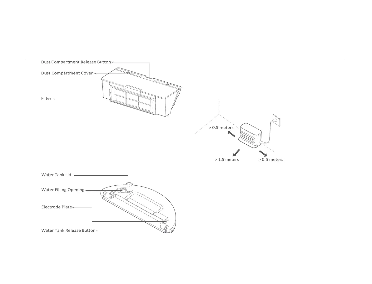 • Make sure there are more than 1.5 meters of clearance in front of the charging dock and more than