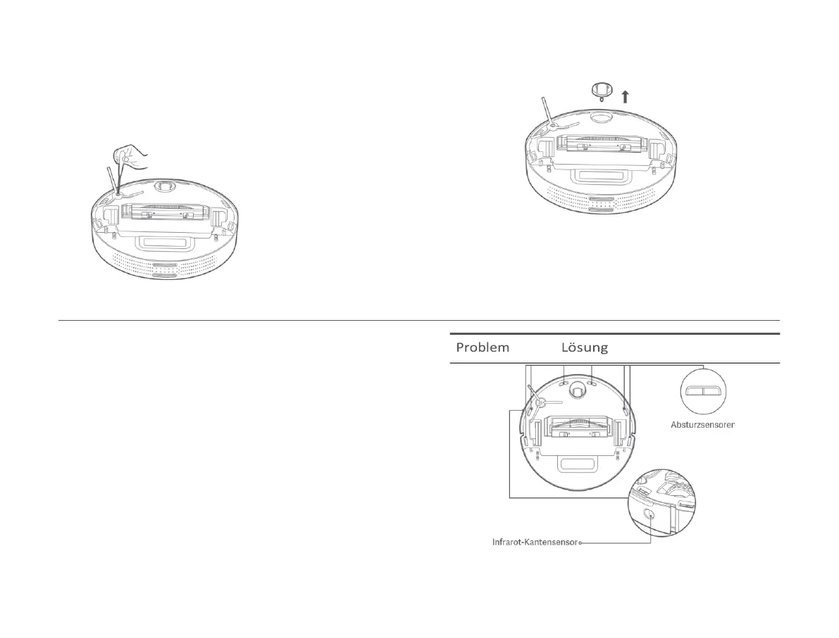 und die Infrarot-Kantensensoren regelmäßig mit einem weichen, sauberen Tuch.