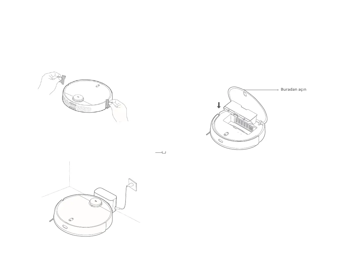 Temizlik robotunu kullanmadan önce her iki taraftaki koruyucu şeritleri çıkarın.