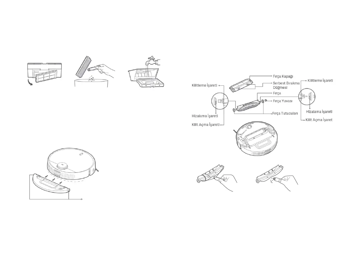 gösterildiği gibi temizlik robotunun alt kısmından dışarı doğru kaydırın.