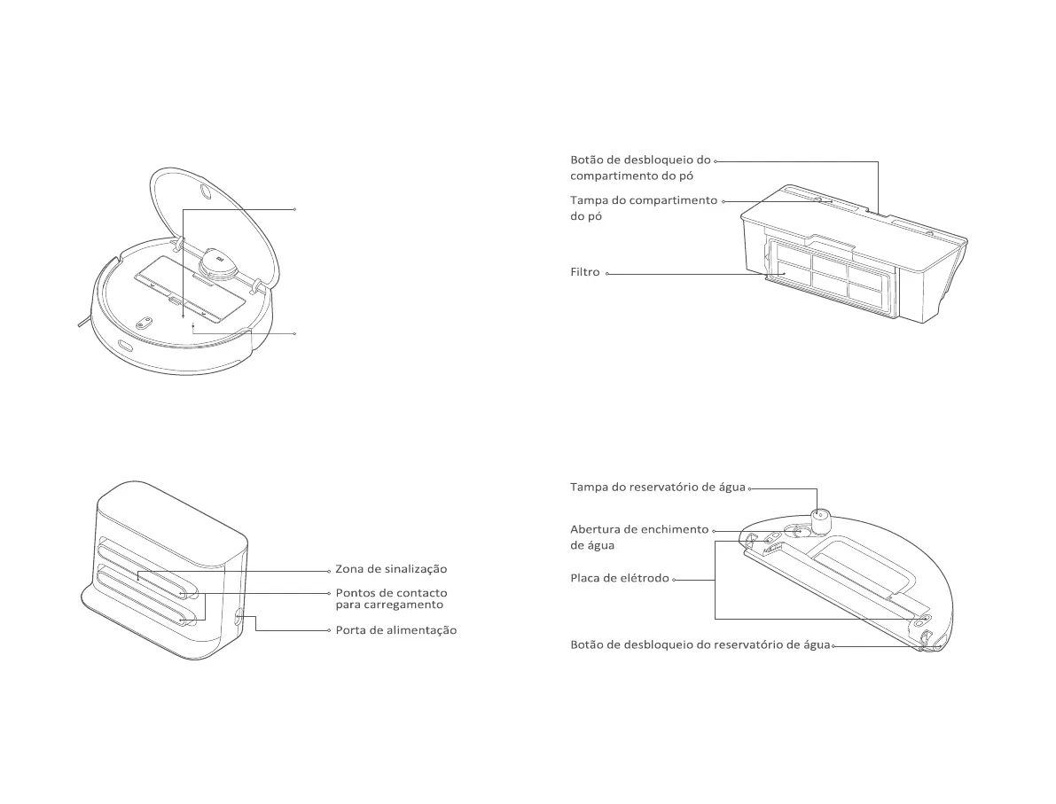 de aspiração e lavagem. Caso contrário, o aspirador com mopa não irá ligar.