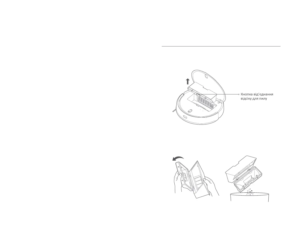 1. Відкрийте кришку робота-пилососа й натисніть на кнопку від’єднання, щоб