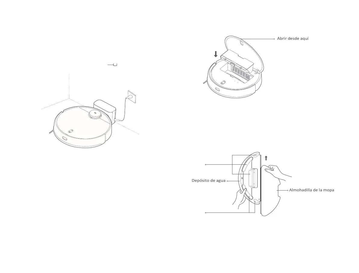 • El aspirador con mopa se encenderá automáticamente cuando esté en la base de carga y no se