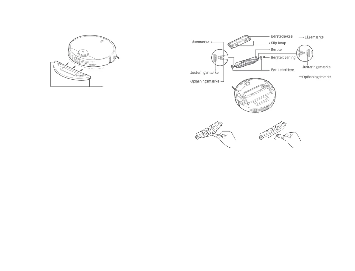 1. Vend robotstøvsuger-moppen og tryk på og hold de to udløserknapper nede