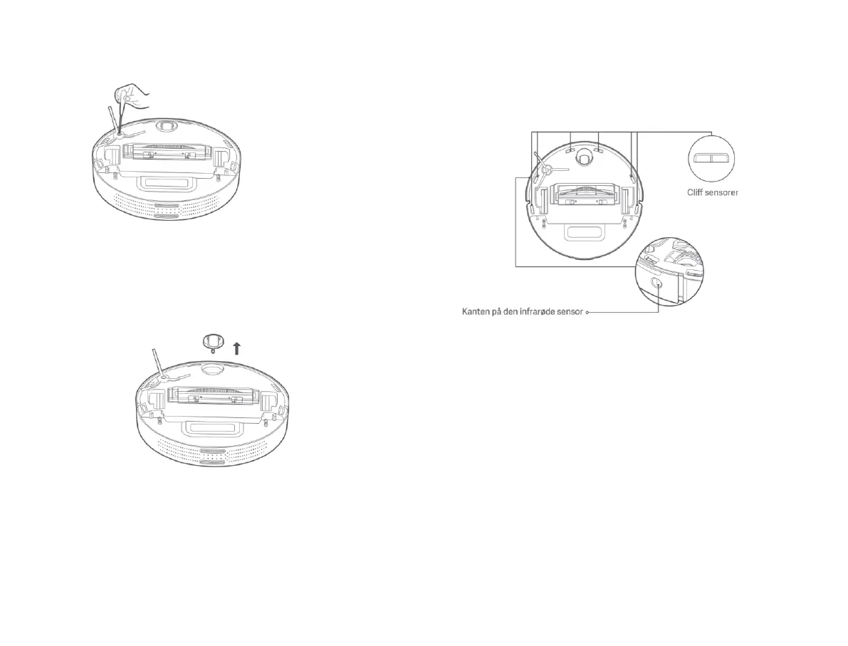 Brug en blød, tør klud med mellemrum for at rensecliffsensorer og kanten på den