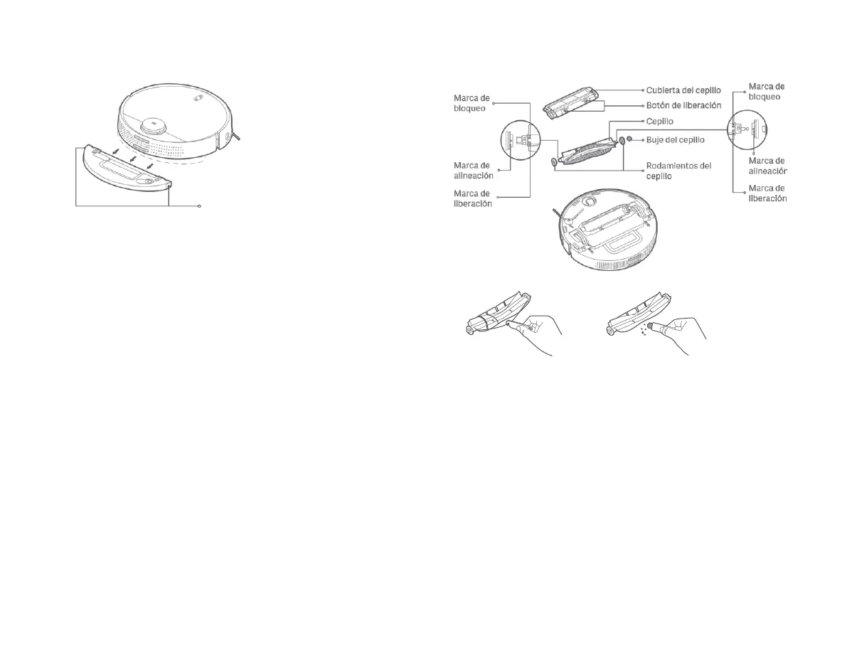 4. Gire los rodamientos del cepillo hasta que la marca de alineación de cada