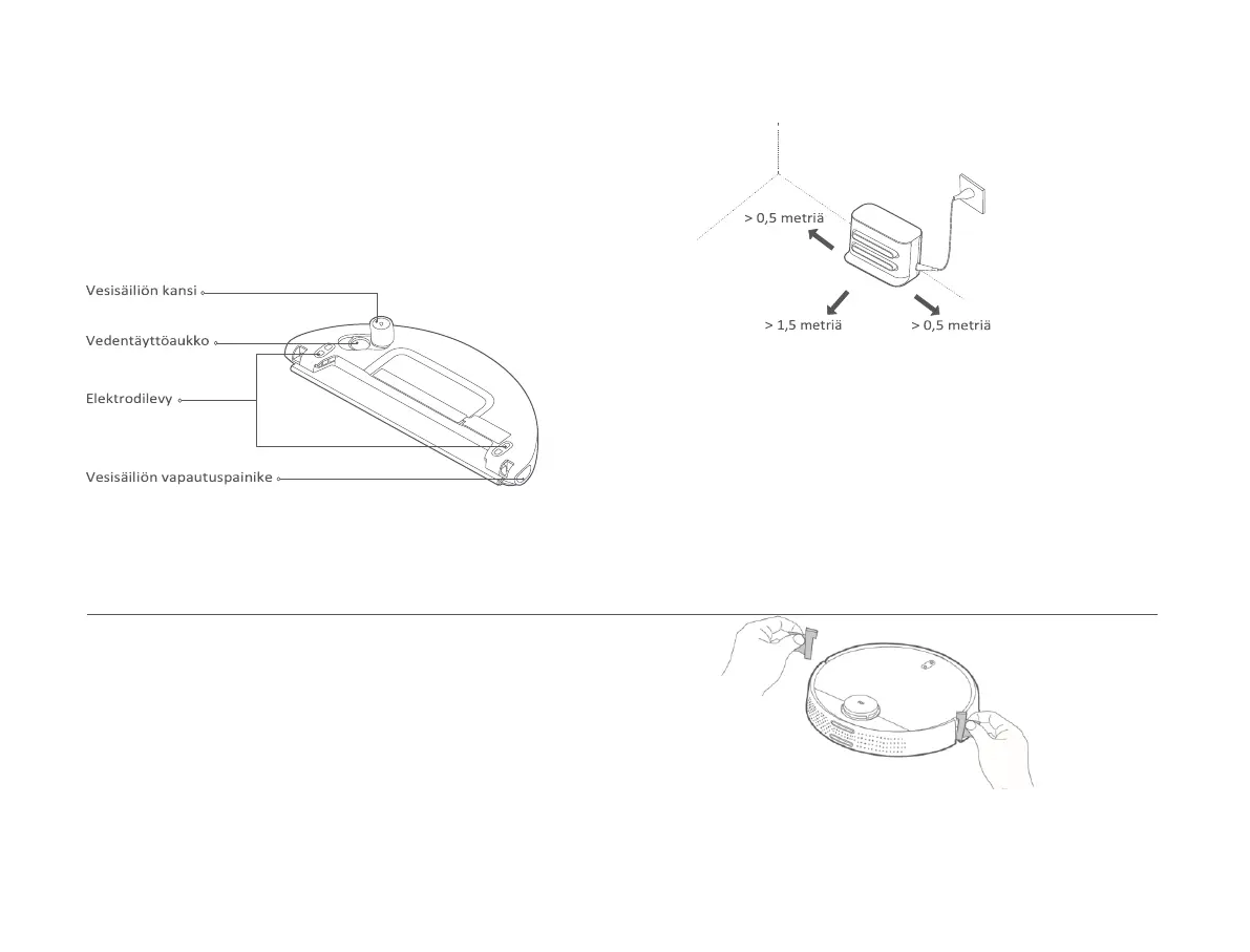 • Poista ylimääräiset johdot, jotta imurimoppi ei tartu niihin. Tämä voisi johtaa latausaseman