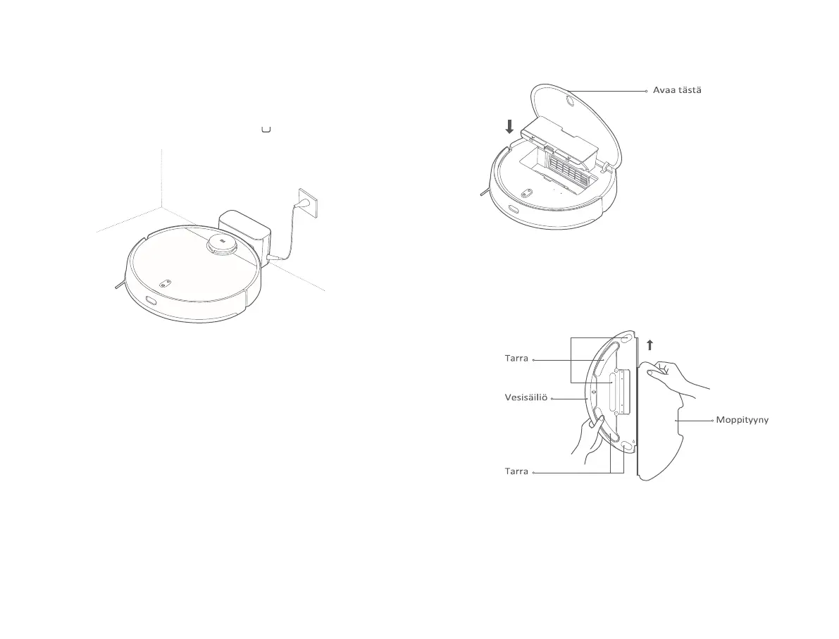 Imurointi- ja moppaustila (asenna pölykotelo, vesisäiliö ja moppityyny):