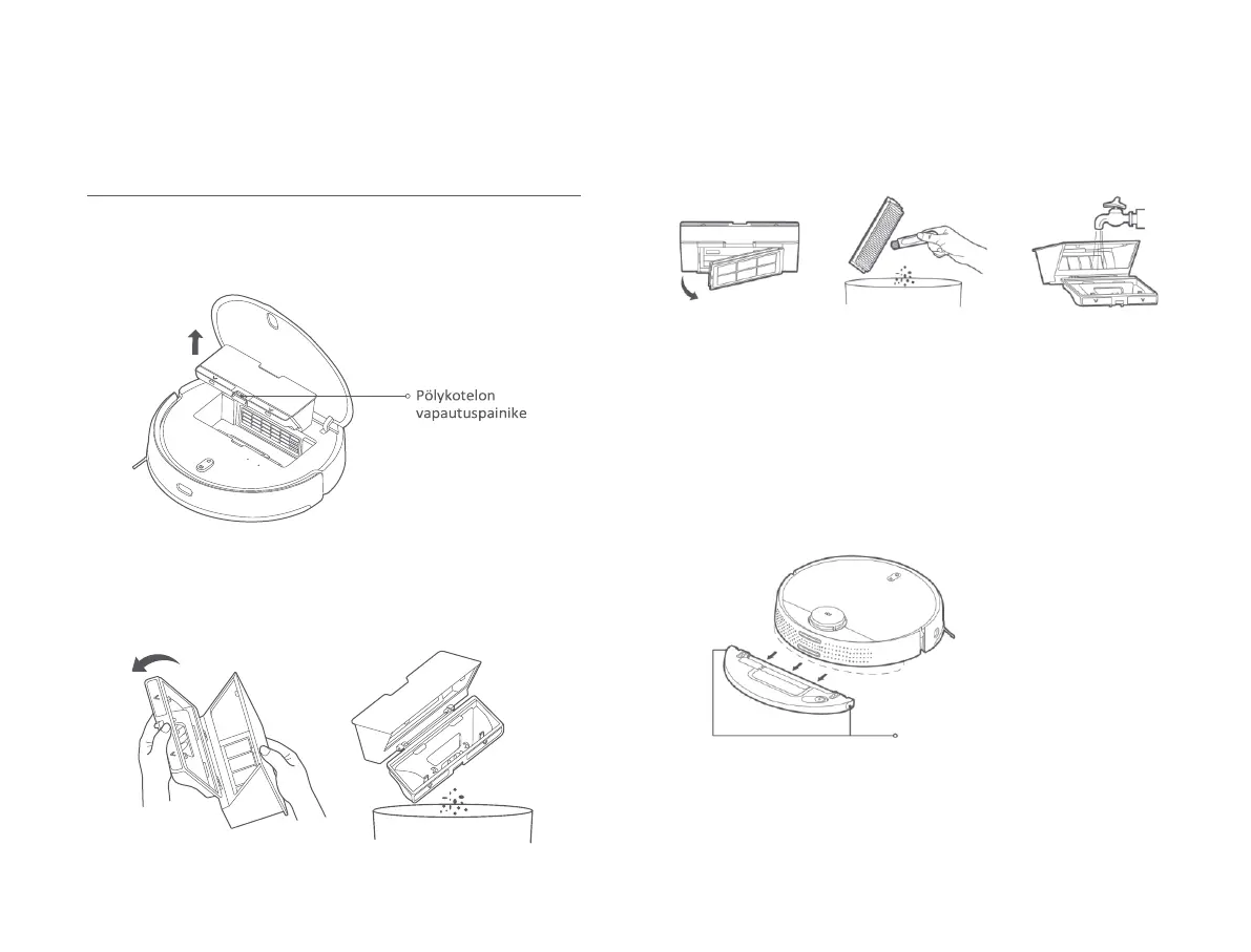 Huomautus: Suosittelemme puhdistamaan pölykotelon perusteellisesti vähintään kerran